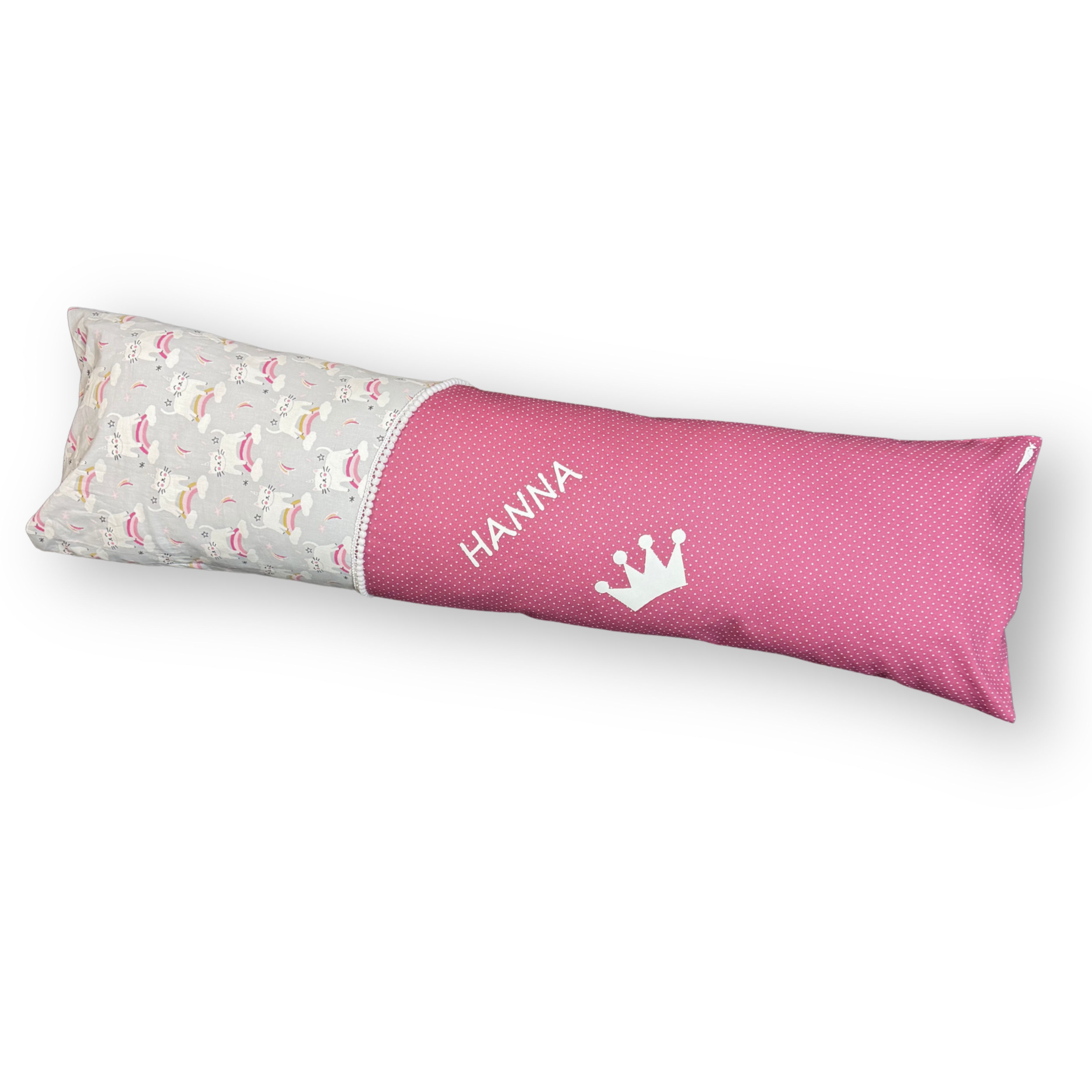 Lieferung inkl. Rohling und Band für den Verschluss, ohne Kissen. Gesamthöhe: ca. 88 cm Höhe ohne Verschluss: 70 cm Made in Germany Produktdetails: Stoff oben: Grau mit bunten Kätzchen, Regenbögen und Sternschnuppen, 100% Baumwolle, vom Hersteller zertifiziert nach STANDARD 100 by OEKO-TEX.